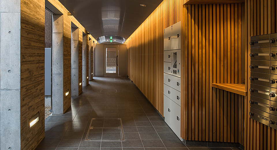 建物性能はあらゆる意味において長寿命であることに取り組んだ結果、「住宅性能表示制度」耐震等級二、温熱環境等級四、その他を取得した。室内は外断熱+Low-eガラスにより高い断熱性能を有している。これにより温熱環境の快適性ばかりでなく高い省エネ性も発揮できる。また、共用部の電力消費を補う為に発電出力10.08kwの太陽光発電システムを設置している。