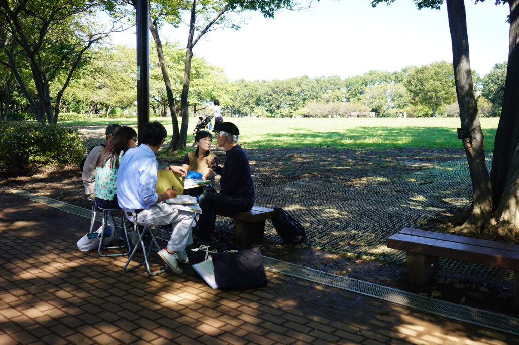 その後、現場近くの公園で打ち合わせを行いました。